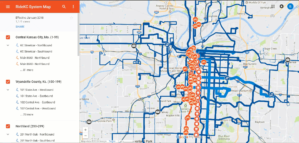 The base bus fare is $1.50 and $50 for a monthly bus pass. You can also purchase multiple different types of passes. When using RideKC, you can track your bus and plan your trip in advance by going to their website