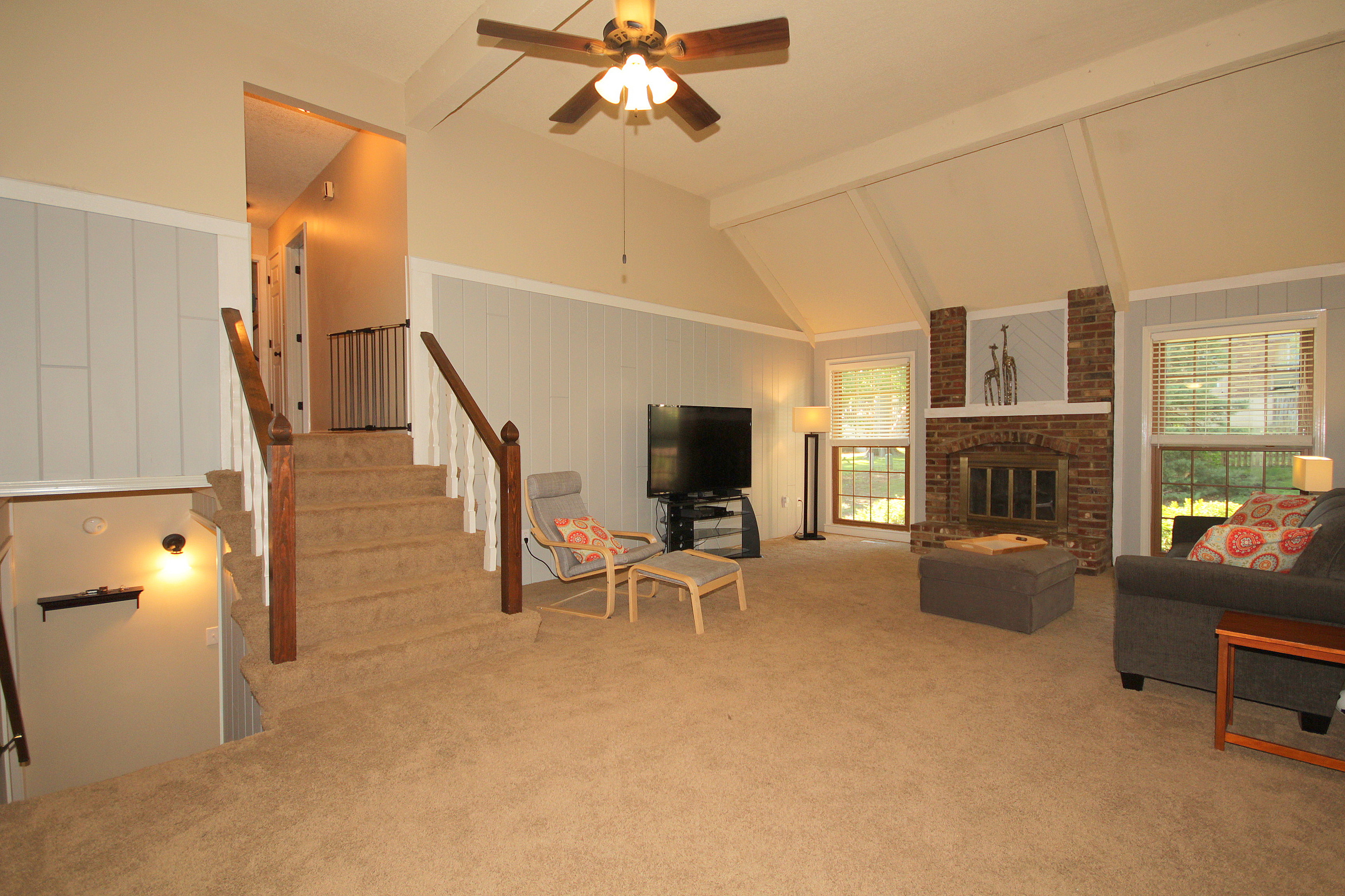 The living room has tall vaulted ceilings and features a nice brick fireplace. Also featured in the living room are tall windows to allow lots of natural lighting to enter the room! Not only the living area but the entire home recently received fresh interior paint.