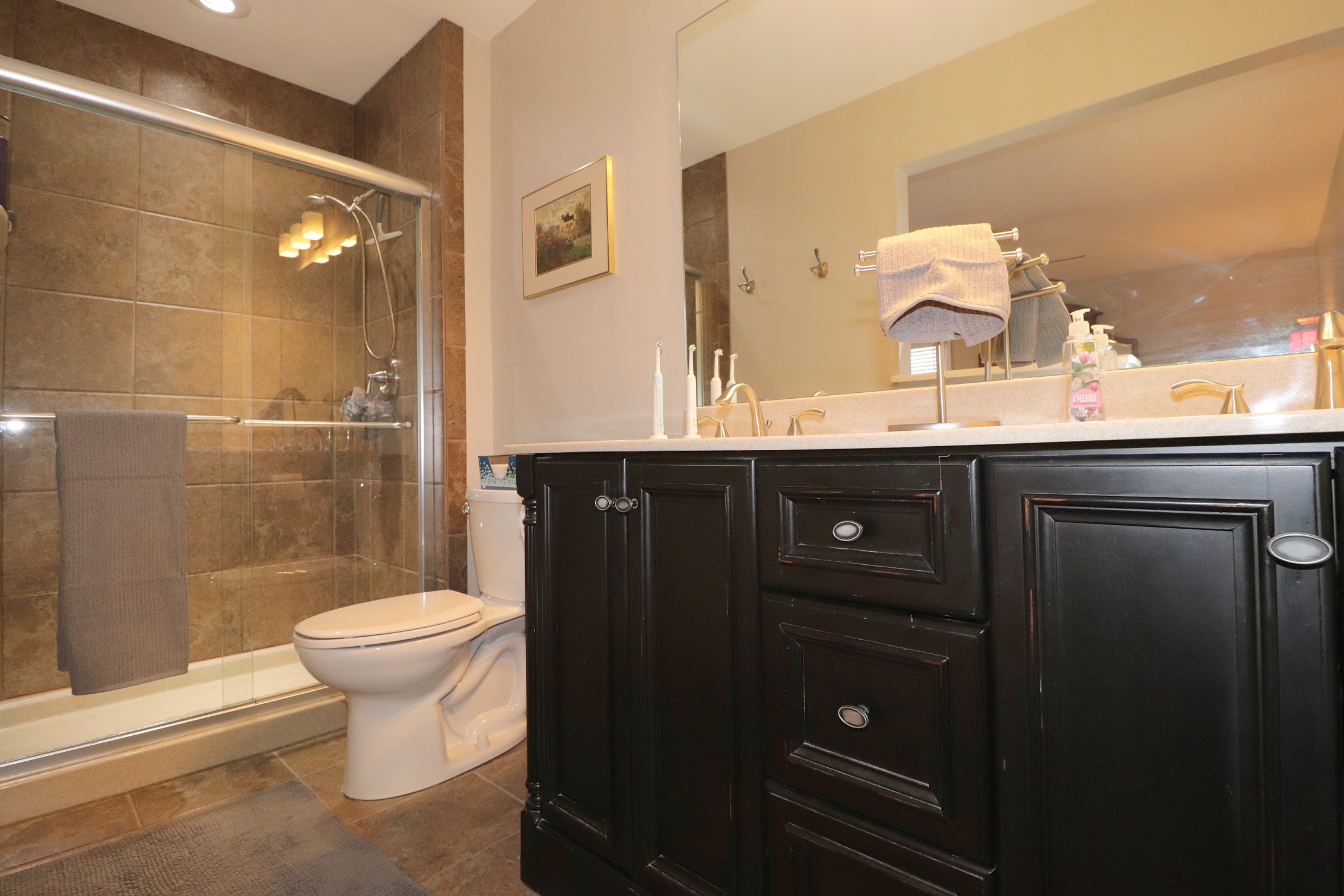 Master Bathroom Features His & Her Sinks and Oversized Glass Shower